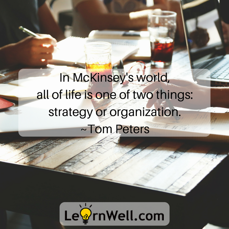 In McKinsey’s world, all of life is one of two things- strategy or organization. ~Tom Peters